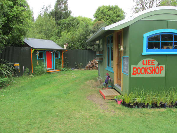 Ruth Shaw has three tiny book shops Manapōuri. The main one can be jam-packed with up to 2000 books, the second is a children's book shop with a small door, and the third is 'The Snug' - an old English linen cupboard with a shed to stay waterproof - which covers topics like hunting, fishing, tractors, and war.