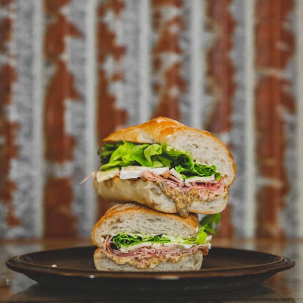 'The French' at Hokitika Sandwich Company is a hearty sandwich made of ham, brie, aioli, mustard and greens.